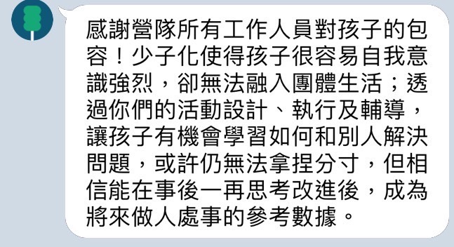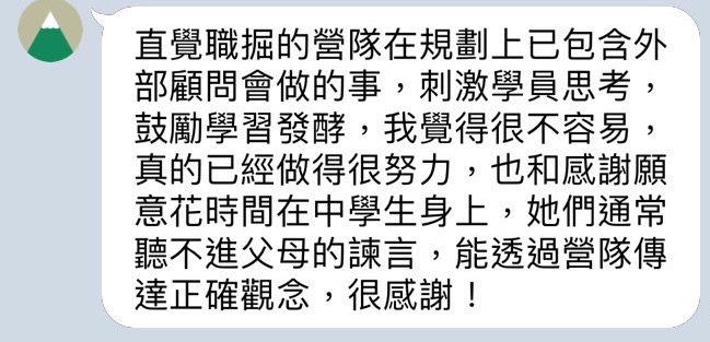 謝謝父母願意讓我參加這個有意義的營隊。