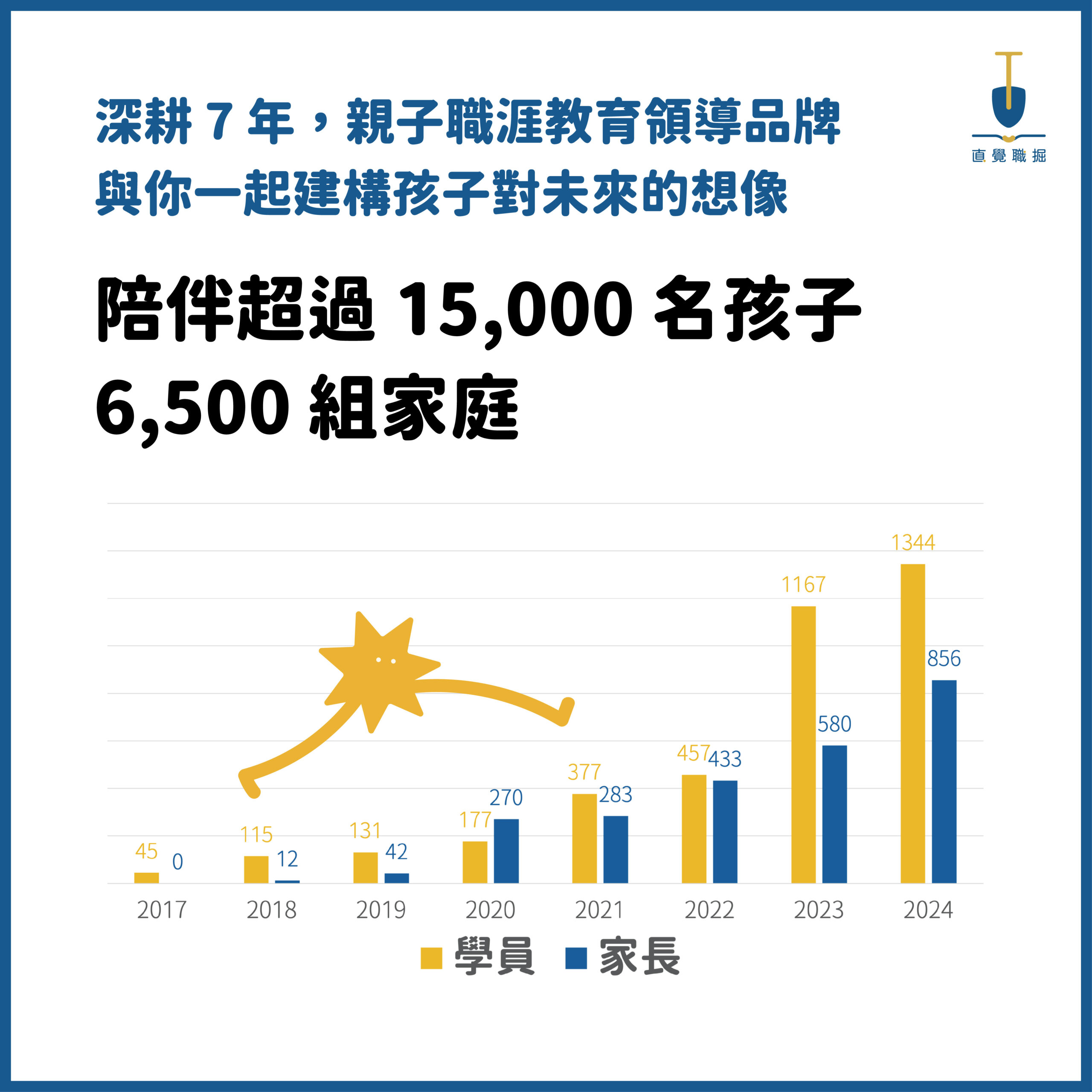 六年來我們建構出一套「體驗教育」及「引導反思」的系統。走訪台北、宜蘭、新北、桃園、新竹、台中、嘉義、雲林、台南、高雄、馬祖等縣市,實作過百種以上職業體驗課、累計參與的學生與家長超過 15000 人。