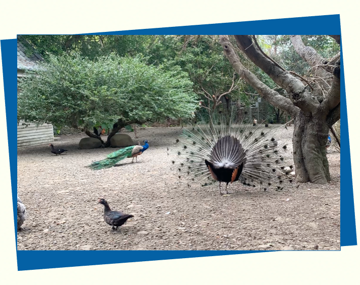 園內有 5 顆百年茄苳神木、上百種果樹及世界各地的奇花異草,能享受親自修剪樹枝、摘採水果品嚐的樂趣。老闆小丁還養了超過 20 種動物,本著對自然生態的重視,讓動物無拘無束地在園區內走動,有迷尼馬、孔雀、火雞…!鸚鵡更會飛上肩頭和你玩喔!