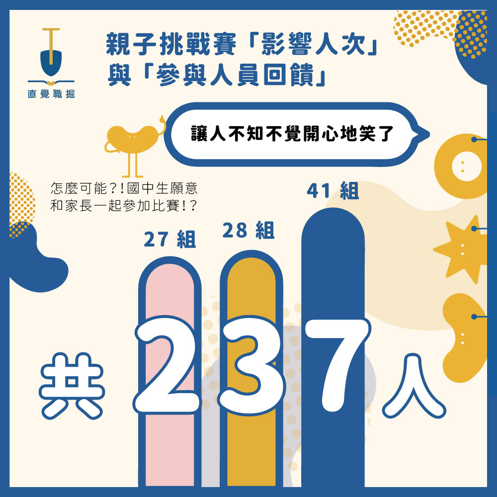 我們發現,如果要延續孩子探索的行動,需要整個環境的支持。其中家庭的支持,也是最關鍵的一項。但在討論未來發展方向、職涯目標前,還得先打破青少年與家長之間的那道牆,或至少讓孩子與大人都可以信賴對方。所以「親子挑戰賽」就這樣誕生啦❗