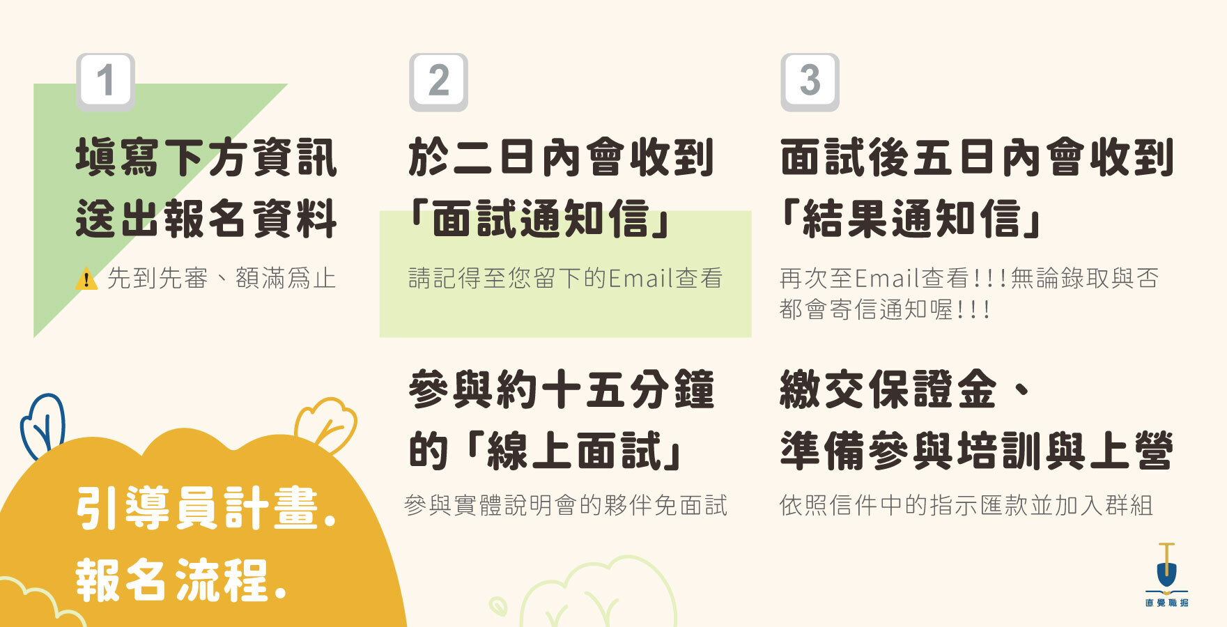 ⚠️ 必要條件:能全程參與營隊引導員培訓,並全程出席至少一場營隊
