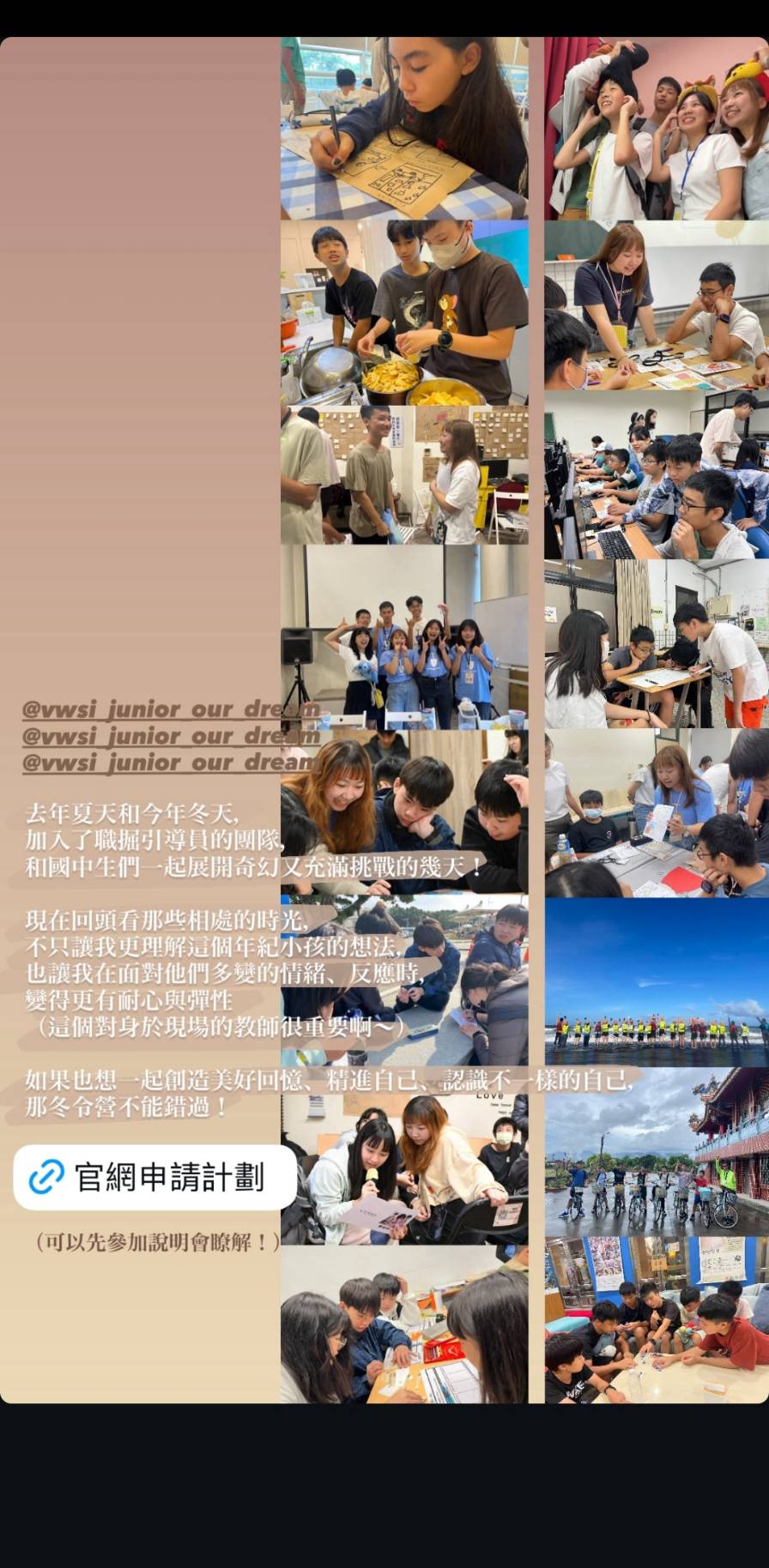 當初是想看看體制外的教育相關組織在做什麼,也想透過營隊的實體機會和國中生相處,在報名後,感覺跨出了自己的舒適圈,以前只曾在線上陪伴學生學習,這次有幸淺嚐實體教育工作者的教學樣態,相信在經驗的不斷累積下,我能越來越熟悉教學現場的狀況!