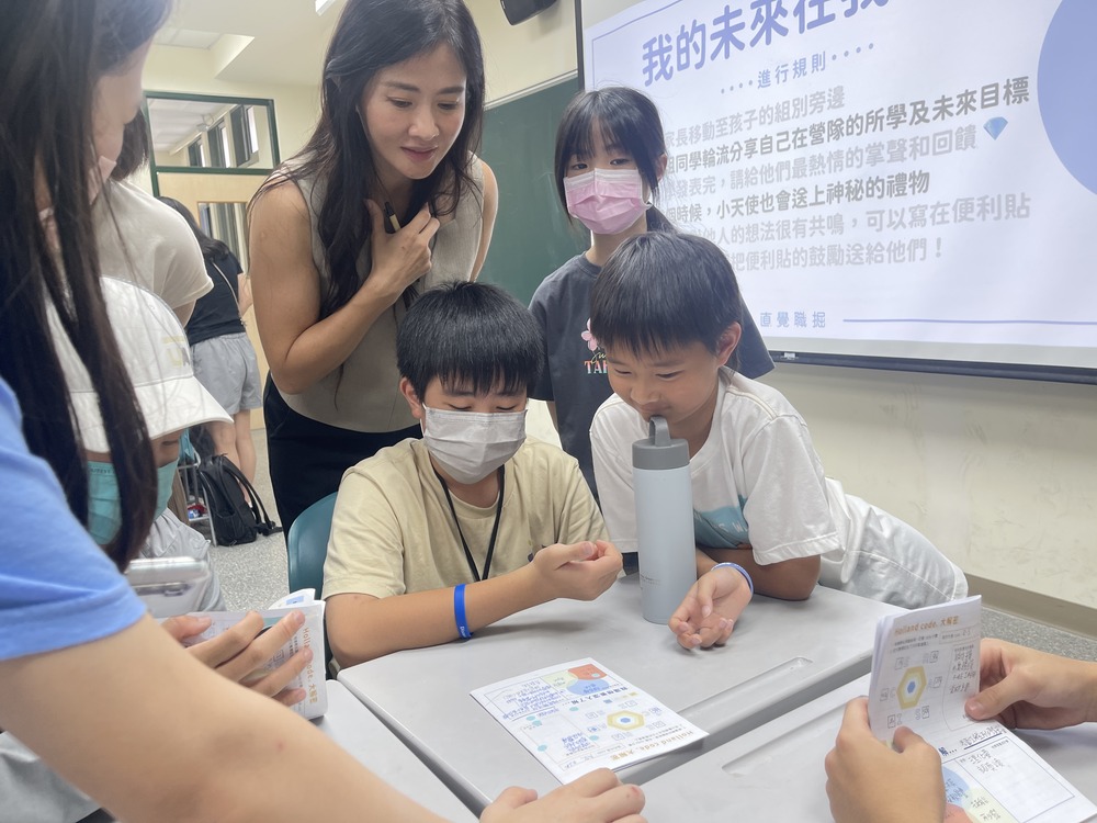營隊期間,每 4 位孩子會分配到一位經過培訓的助教。助教會負責陪伴孩子在營隊期間的學習、引導同組的孩子們討論,也會針對組內孩子的狀況進行調整。