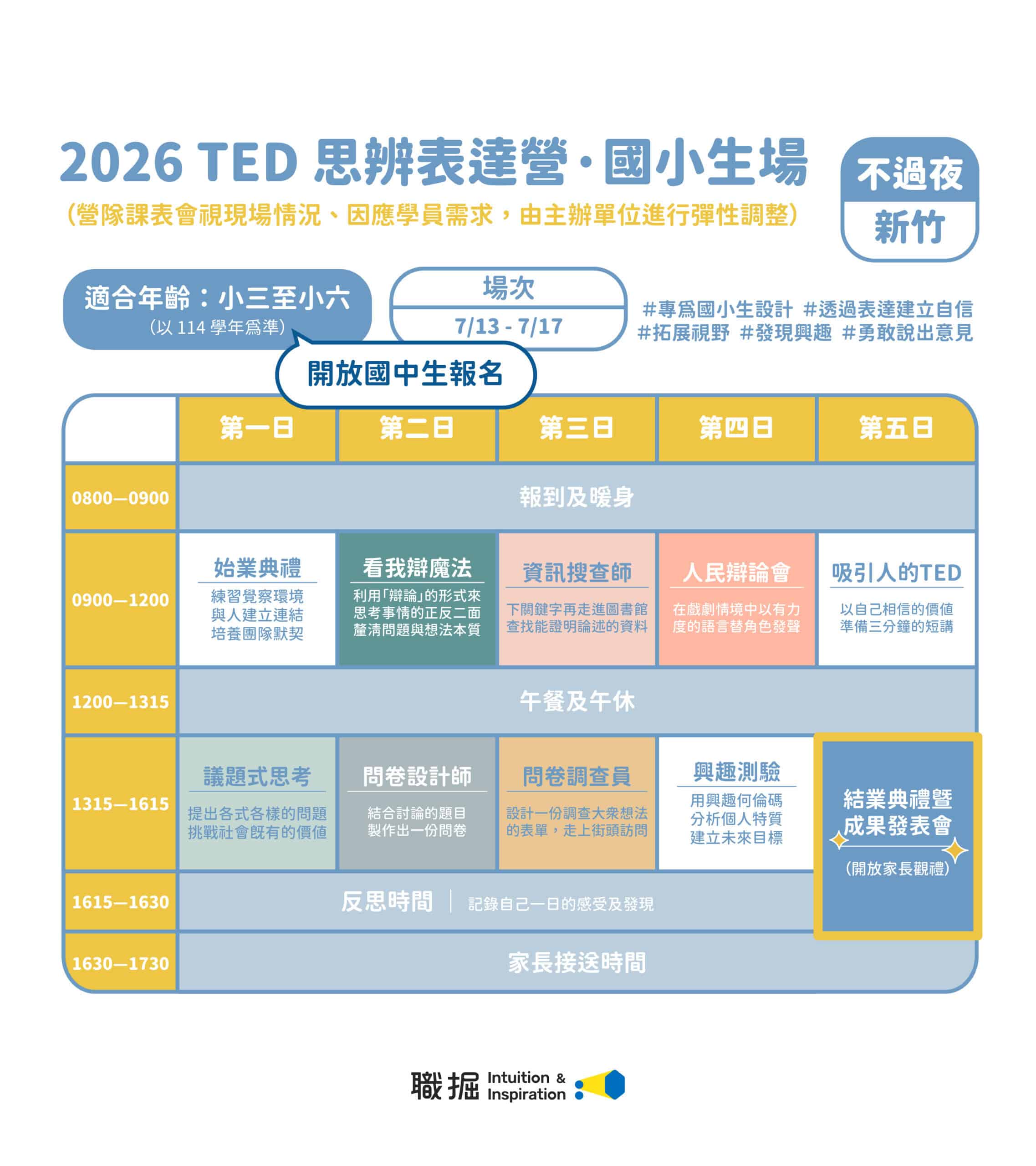參與對象:國中生、高中生,每 6 人成班、10 人滿班