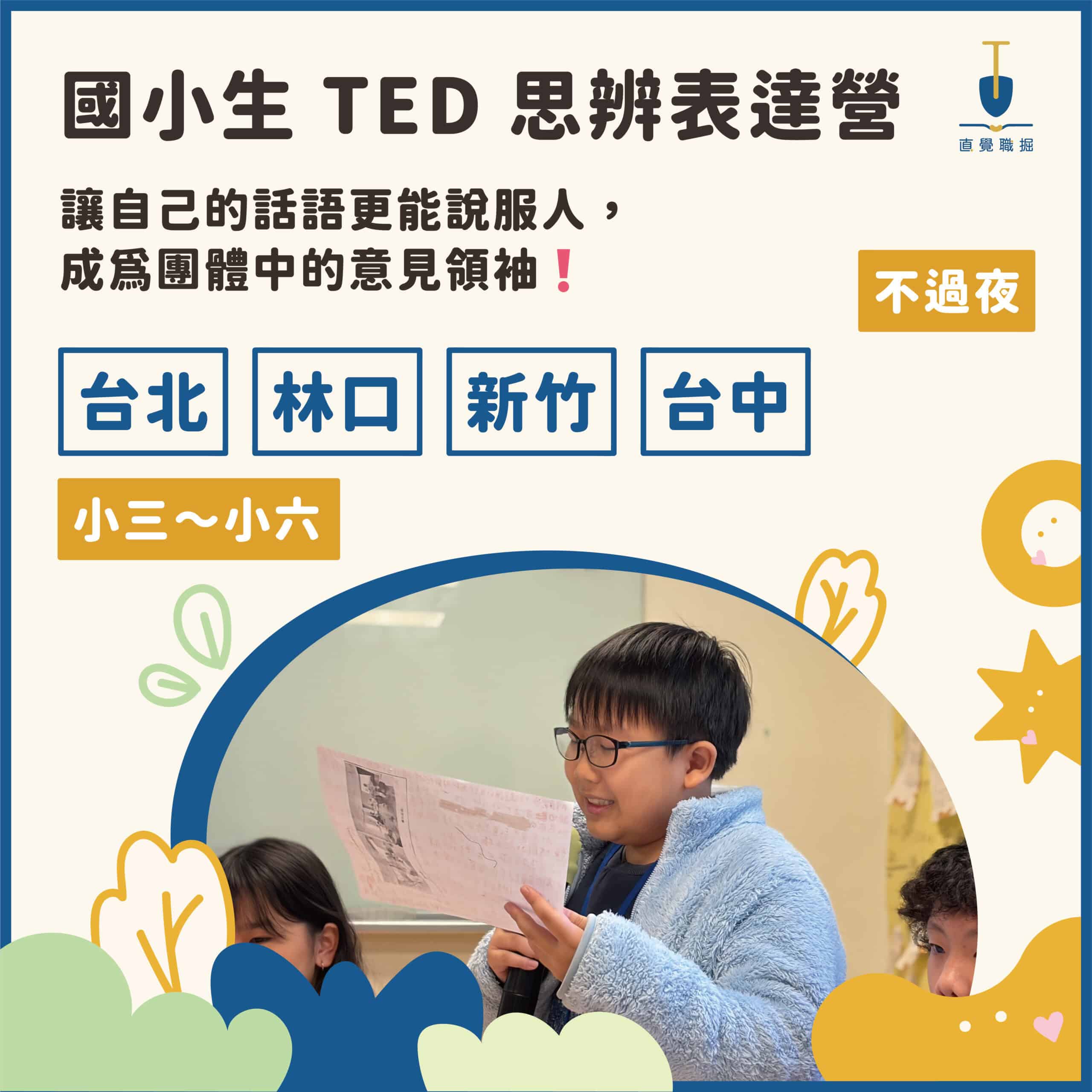 在 TED 思辨表達營中,我們會帶著孩子去挑戰運行已久的價值觀,練習針對他人的想法、理性且有理的說出自己的看法,最後組織思考的脈絡,打造吸引人的短講,透過站上舞臺表達,建立勇氣與自信。