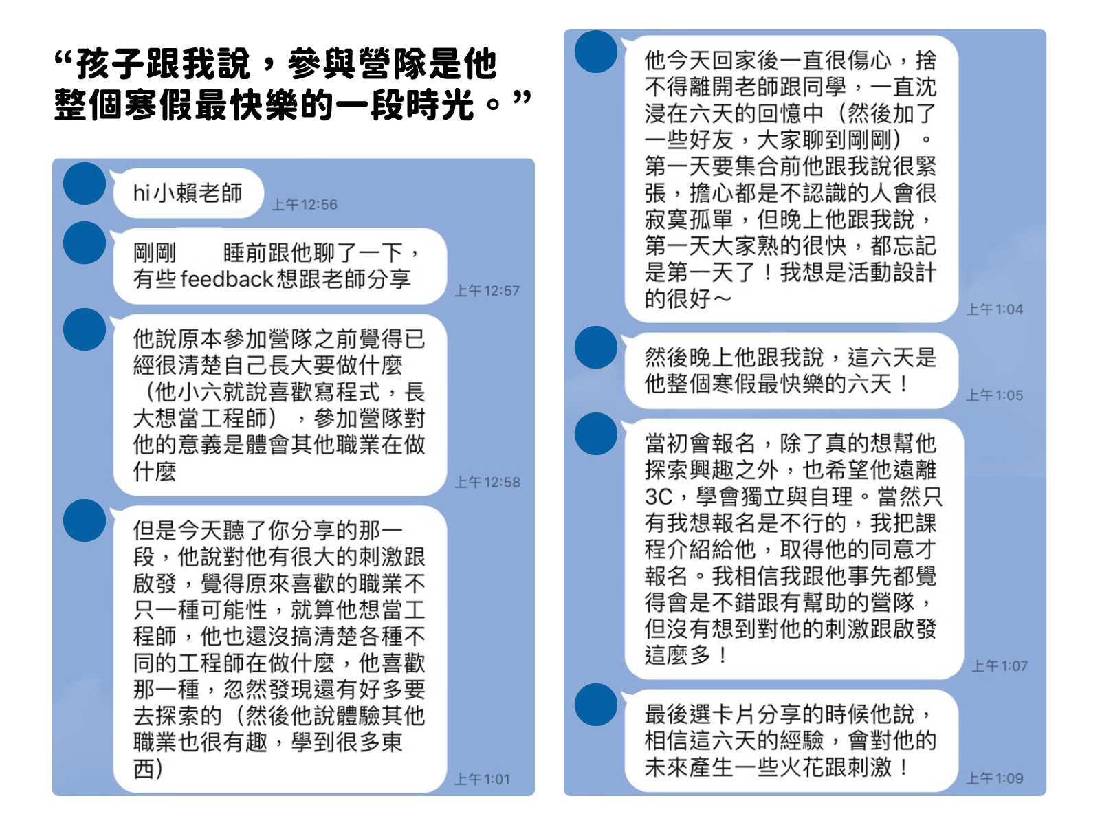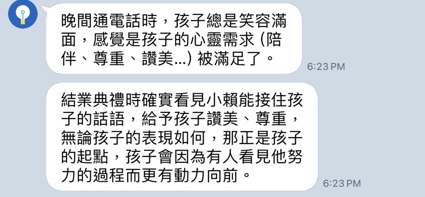 謝謝父母願意讓我參加這個有意義的營隊。