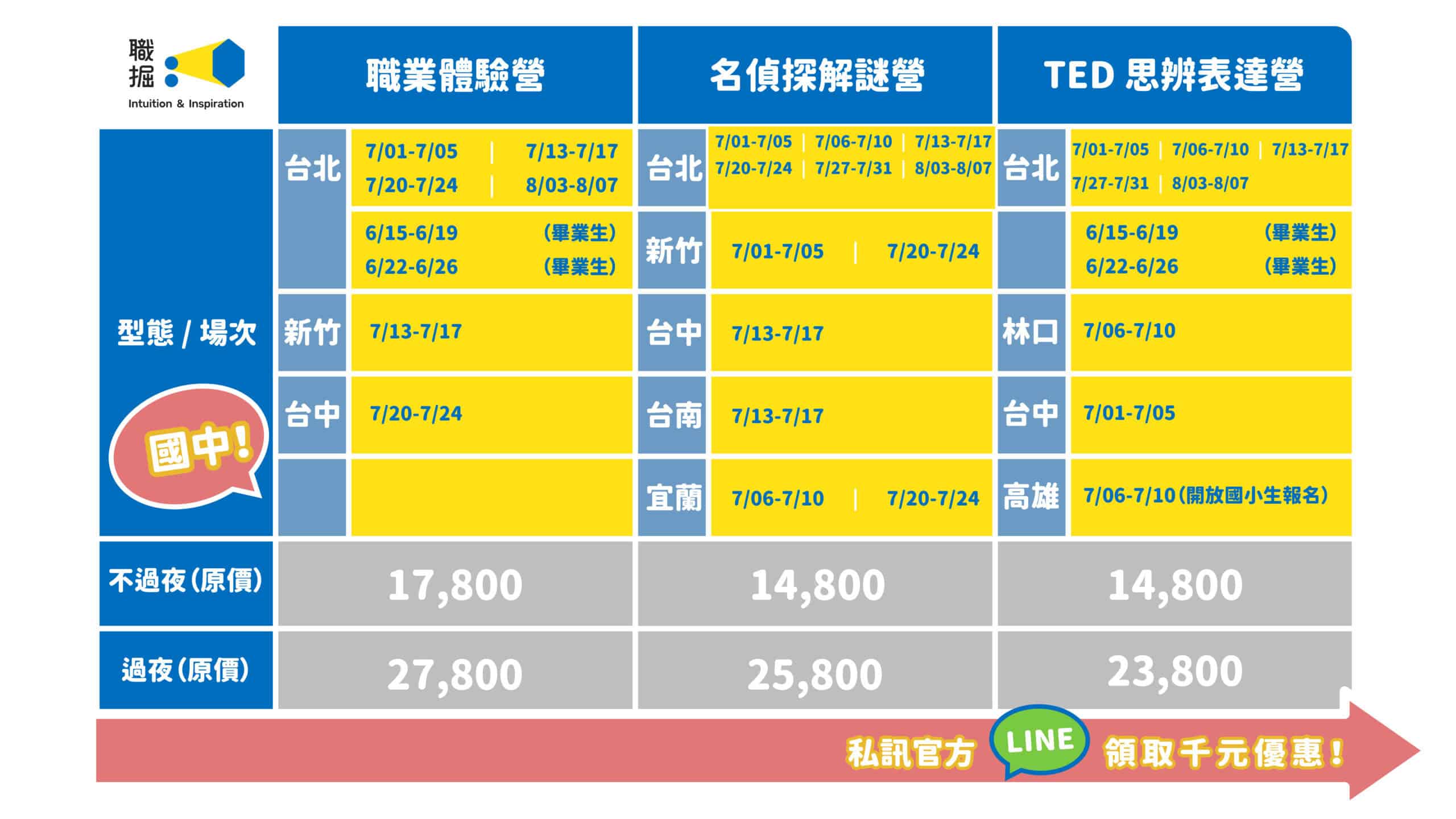 參與對象:國中生、高中生,每 6 人成班、10 人滿班