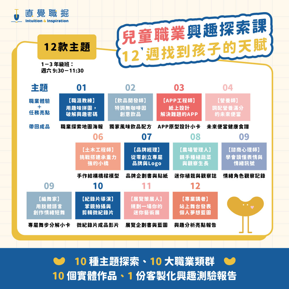 ✅ 費用含課程 / 實體教材教具。 ✅ 課程由專業講師帶領討論,陪伴孩子深度學習。 ✅ 課程將有親師群組,讓爸爸媽媽深入瞭解活動內容及孩子的上課情況。 ✅ 設計集點競賽,讓孩子練習團隊合作、為爭取團隊榮譽感更積極參與課程。 🔺 加入「LINE 爸媽提問群」領取最新資訊與優惠/不漏接說明會提醒 🥐 https://bit.ly/40sQZm4 課程類型 1 小時體驗課, 2 小時單元課, 11 堂完整課(免費贈送成果回顧) 課程細節 2025/12/27(體驗課), 2025/1/3(體驗課), 2025/1/17(體驗課), 2 小時單元課(於訂單最後備註課程主題+日期)2026 年 01 月班( 01/03 起), 2026 年 03 月班( 03/14 起), 2026 年 05 月班( 05/16 起) 商品評價 目前沒有評價。 搶先評價 “成為小小職人(1-3 年級)”取消回覆發佈留言必須填寫的電子郵件地址不會公開。 必填欄位標示為 *您的評分 * 評分… 完美 很好 一般 不錯 很差 名稱 *電子郵件 *您的評價 * 在瀏覽器中儲存顯示名稱、電子郵件地址及個人網站網址,以供下次發佈留言時使用。 送出