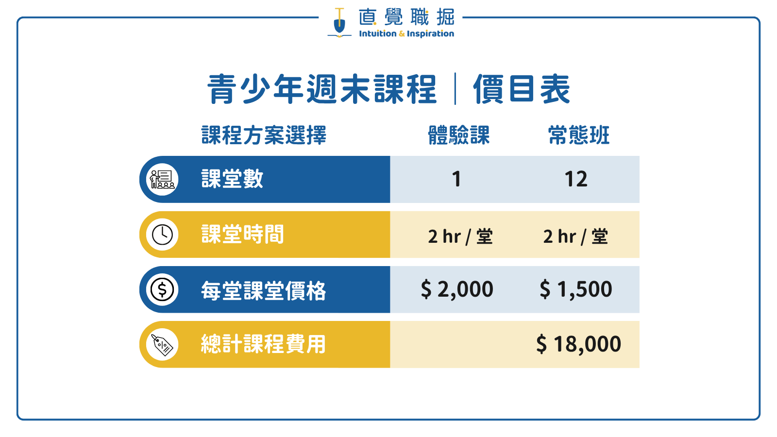 | 堂數 | 單堂體驗課, 12 堂(無限期自由補課) |